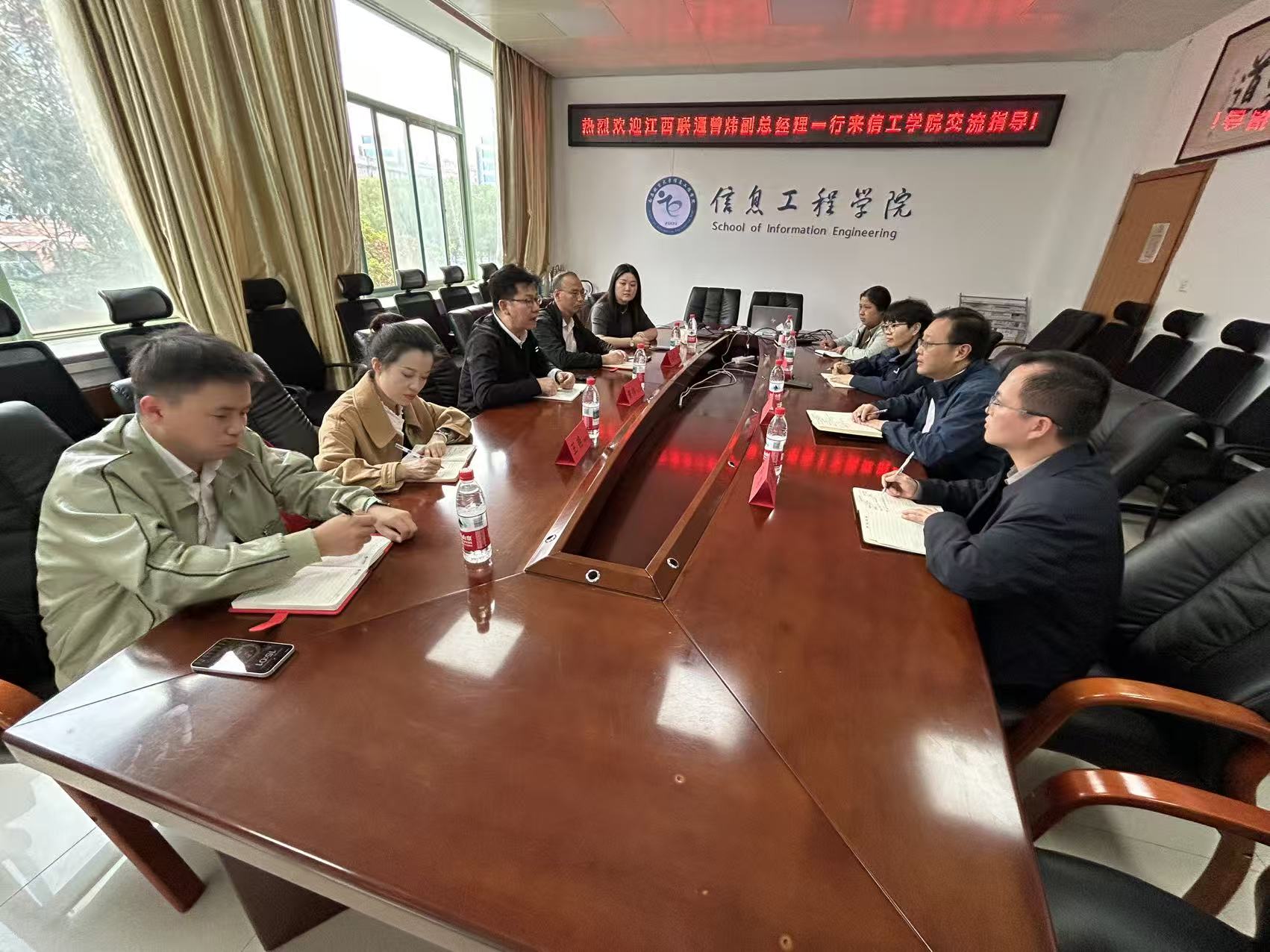 10月27日下午,江西联通科技部副总经理曾炜一行5人来我院交流,学院党委书记方文明、副院长欧巧凤及相关负责人参加校企对接,双方围绕深化校企合作与技术创新展开深入座谈。