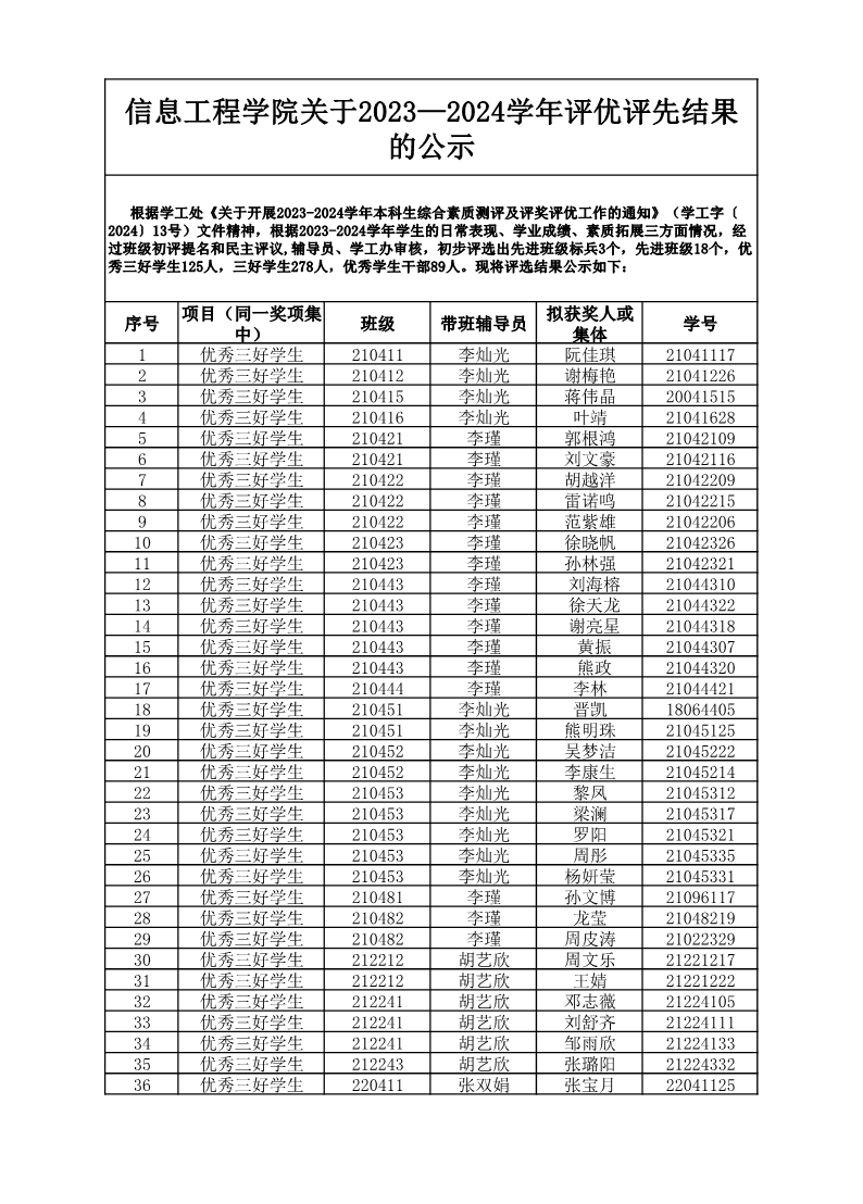 信息工程学院关于2023—2024学年评优评先结果的公示